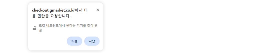 - 허용 버튼 클릭 또는 주소입력창 좌측 설정 버튼에서 "로컬 네트워크 엑세스" 허용 설정